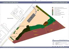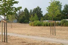 Geländemodellierung u.a. zur Rückhaltung von Regenwasser, Einordnung eines Wegs, Pflanzung als